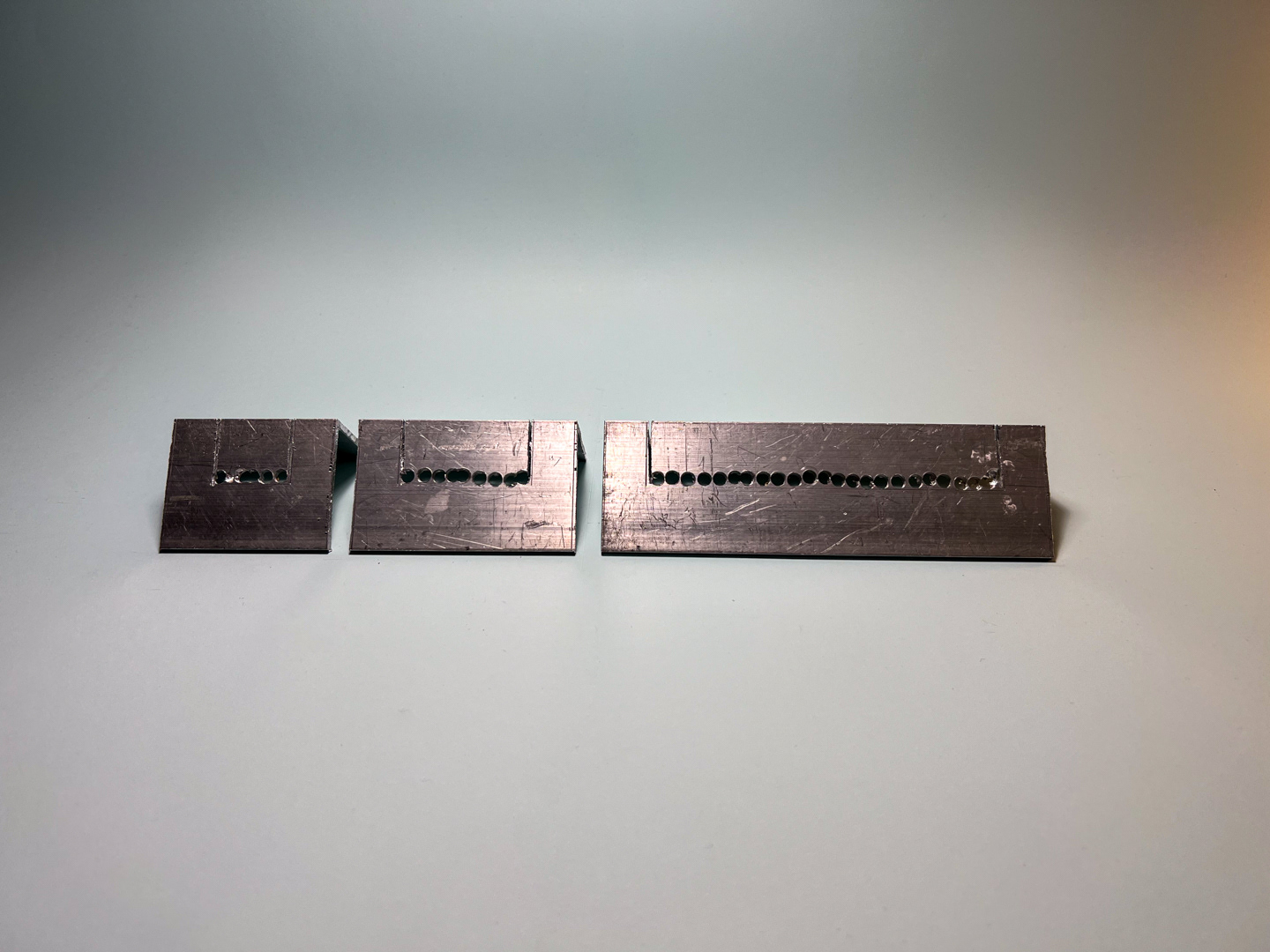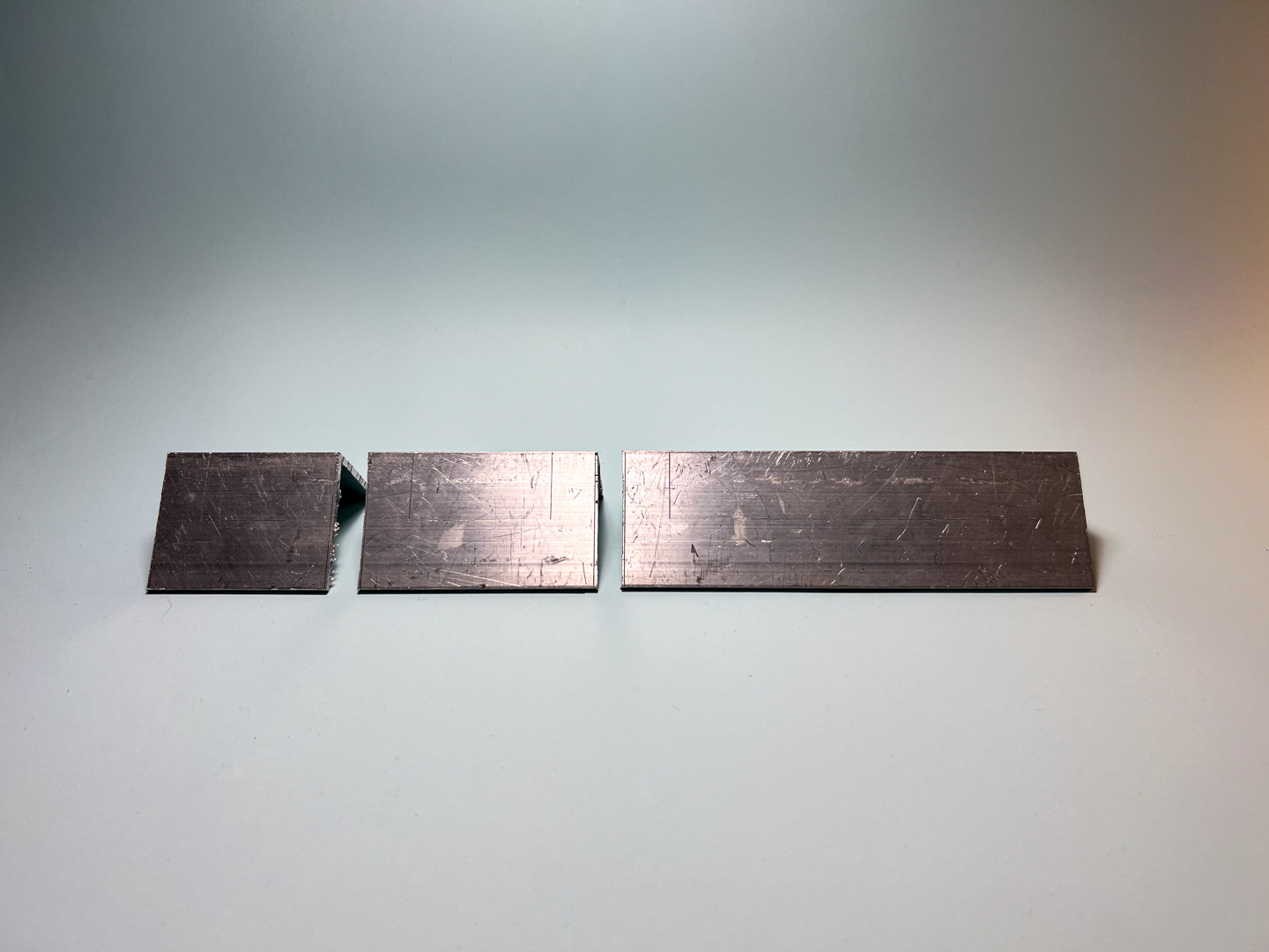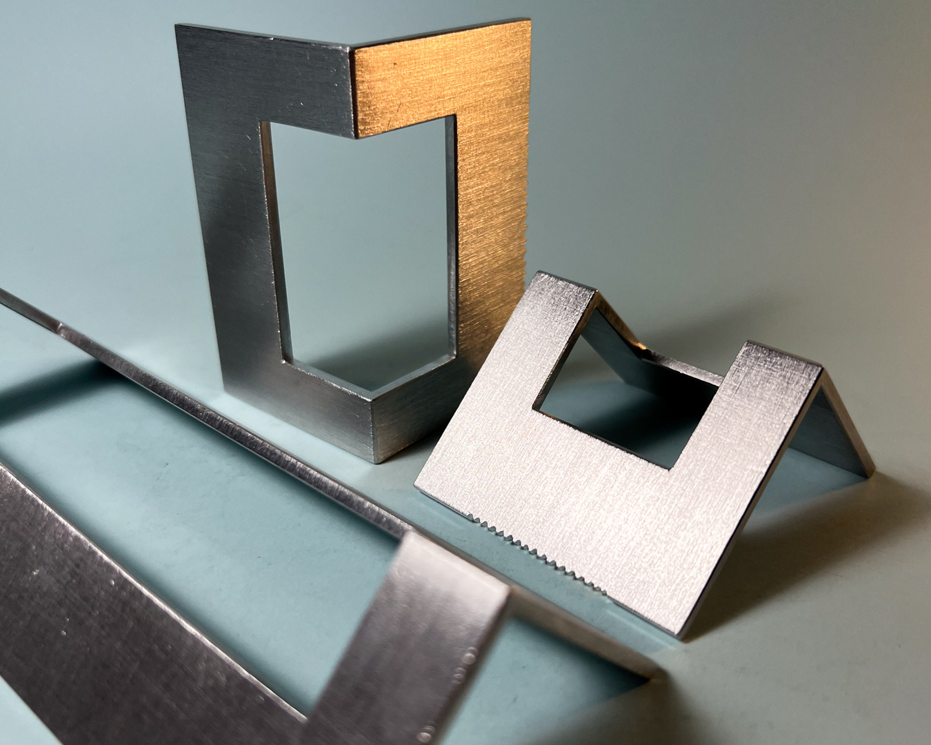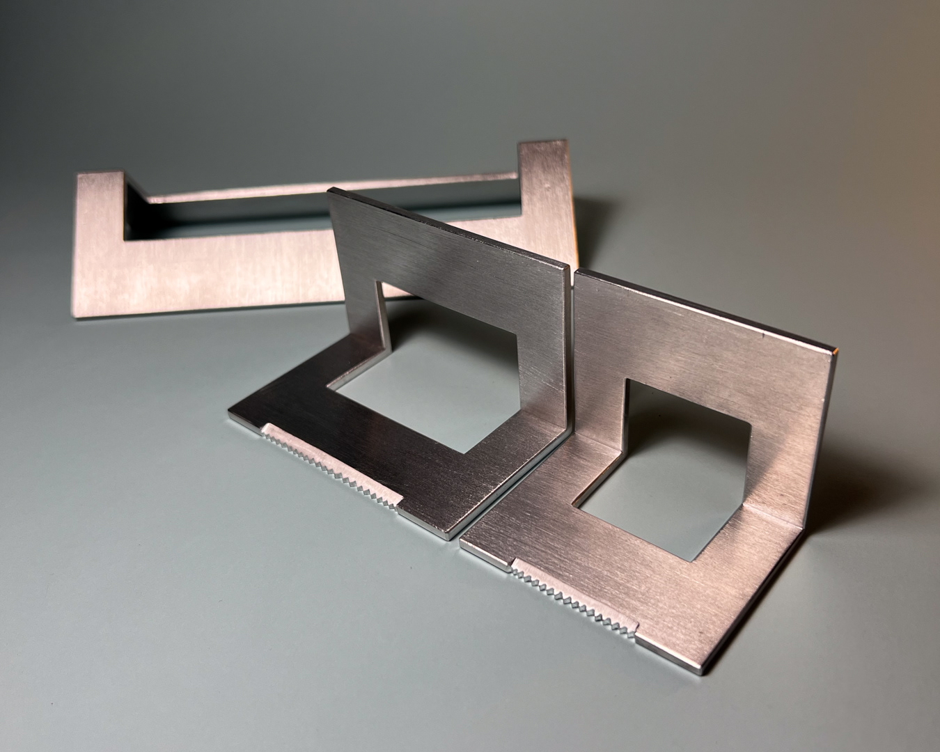 One aluminium bar generates three pieces: two tape dispensers for different widths and a larger element for unused rolls.